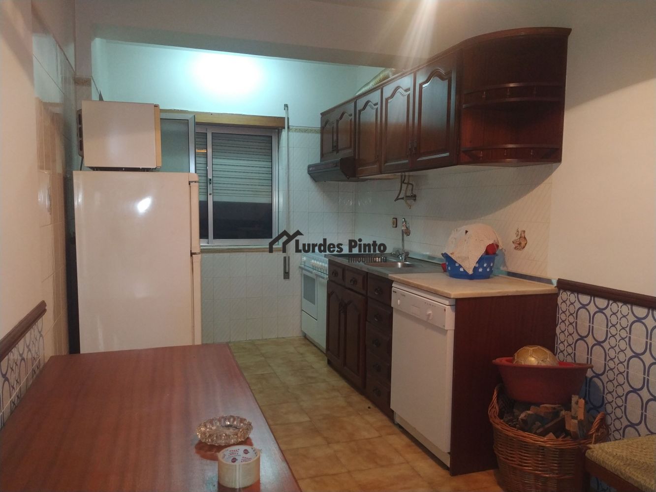 O apartamento situa-se num num primeiro andar sem elevador, com varanda na sala, está totalmente mobilado e dispõe de algum equipamento de cozinha (fogão, máquina de lavar loiça e esquentador);