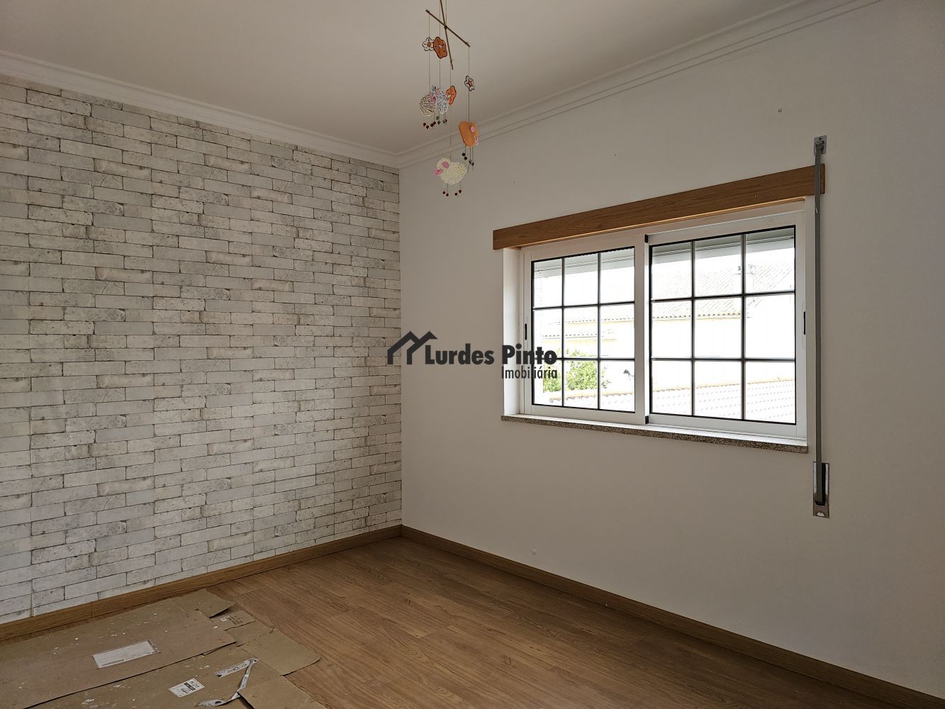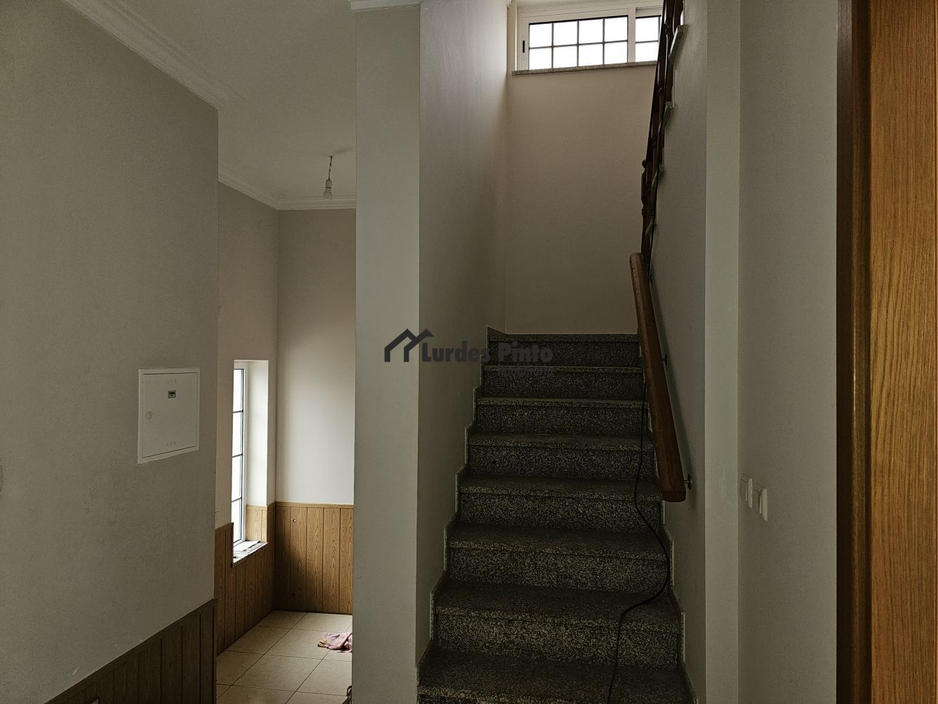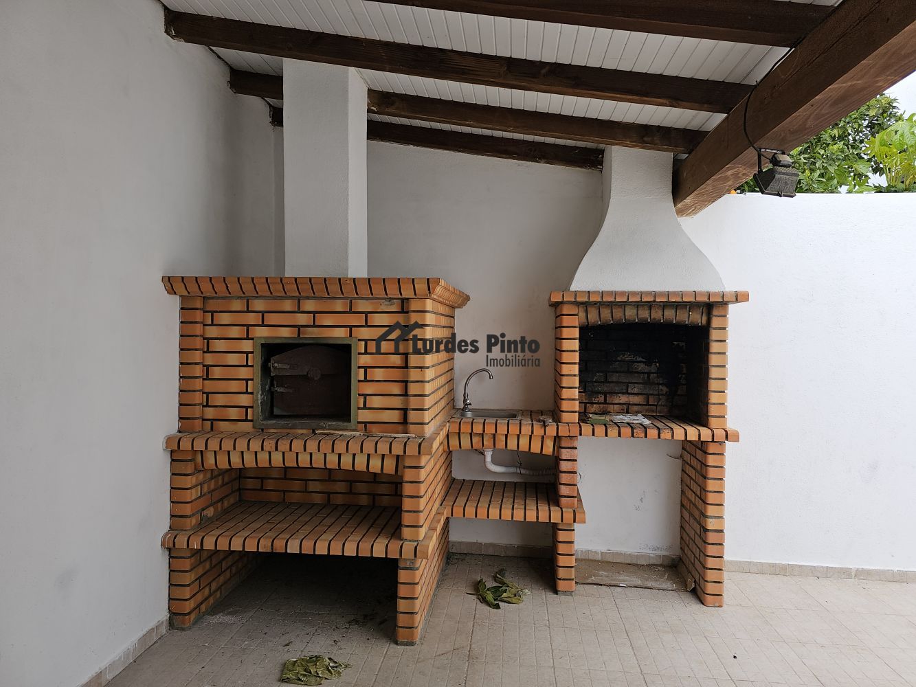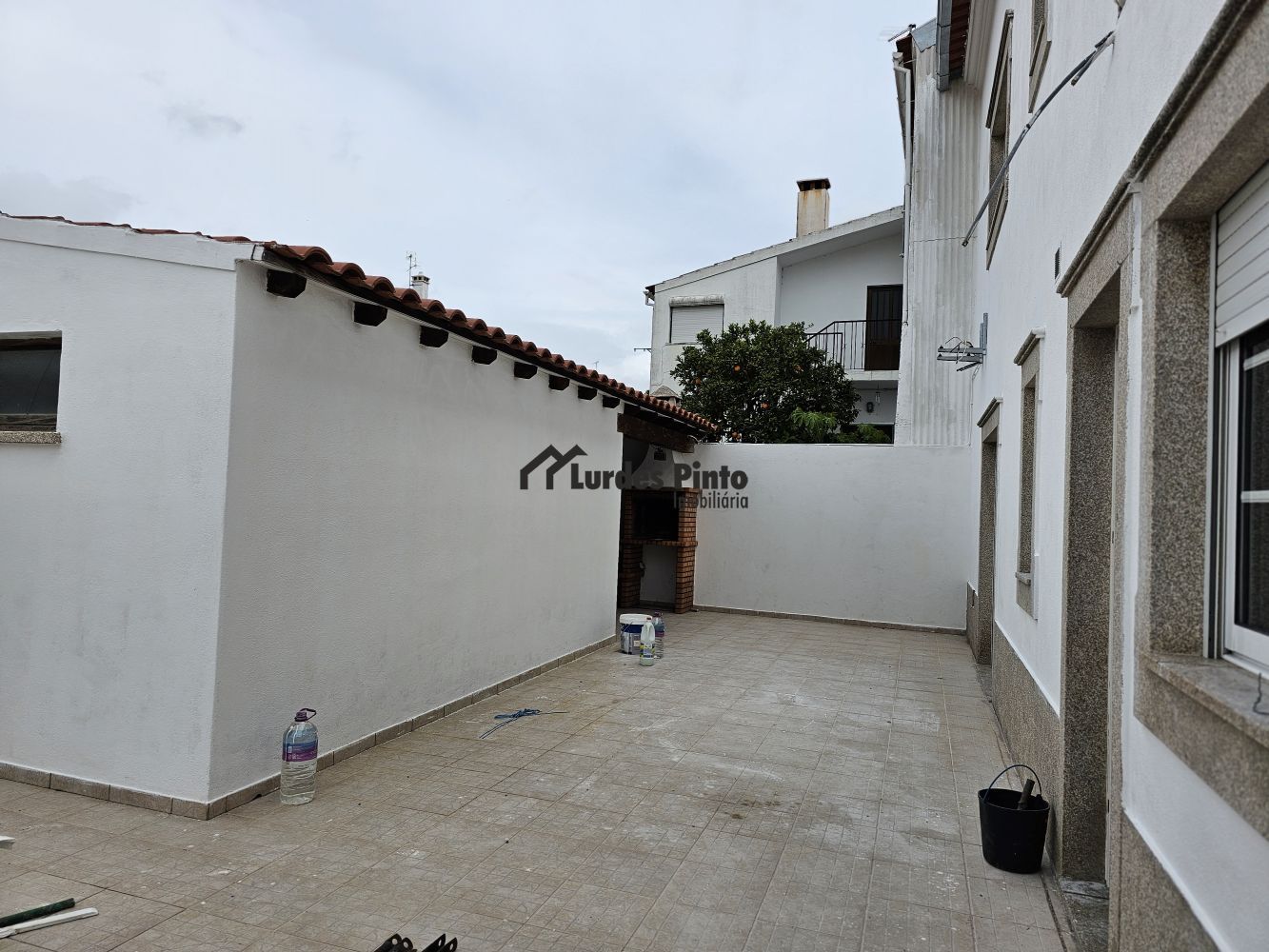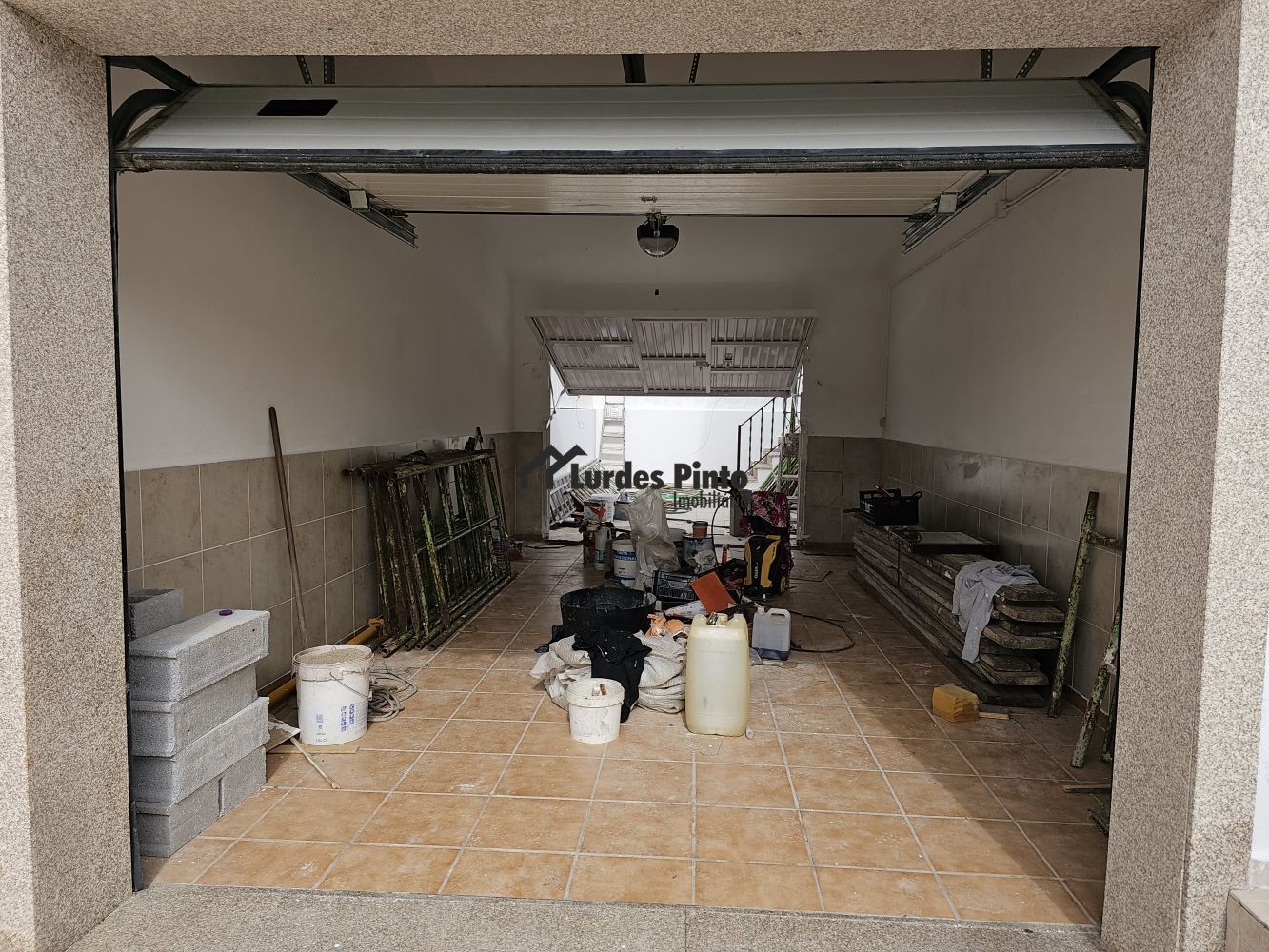 Ao lado da moradia dispõe de uma garagem fechada com comando elétrico e na parte posterior da moradia tem uma zona de lazer com espaço exterior e um grande alpendre com barbecue com bancada e com muito espaço coberto  para arrecadação: