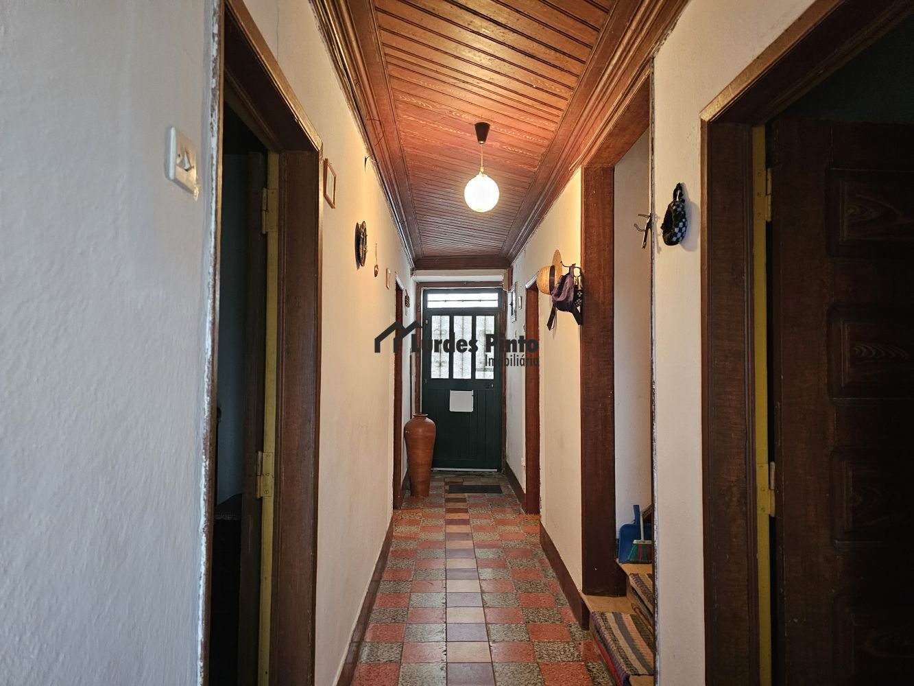 Dispõe de um corredor ao meio da casa que dá acesso a todas as assoalhadas e a uma cozinha na parte posterior da casa e a um logradouro com várias arrecadações e um pequeno terraço;