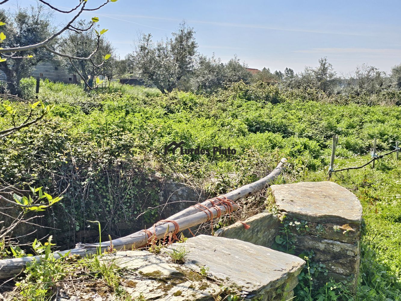 Todo o terreno é murado, dispõe de uma arrecadação em madeira e está muito perto da povoação.